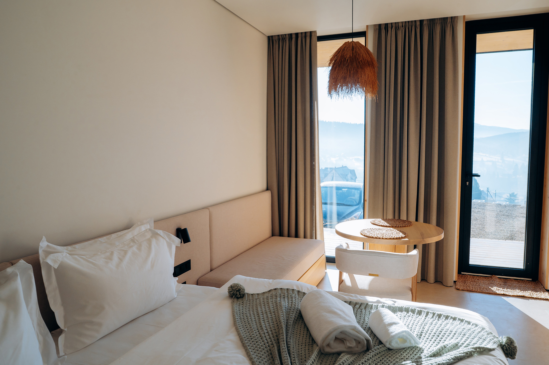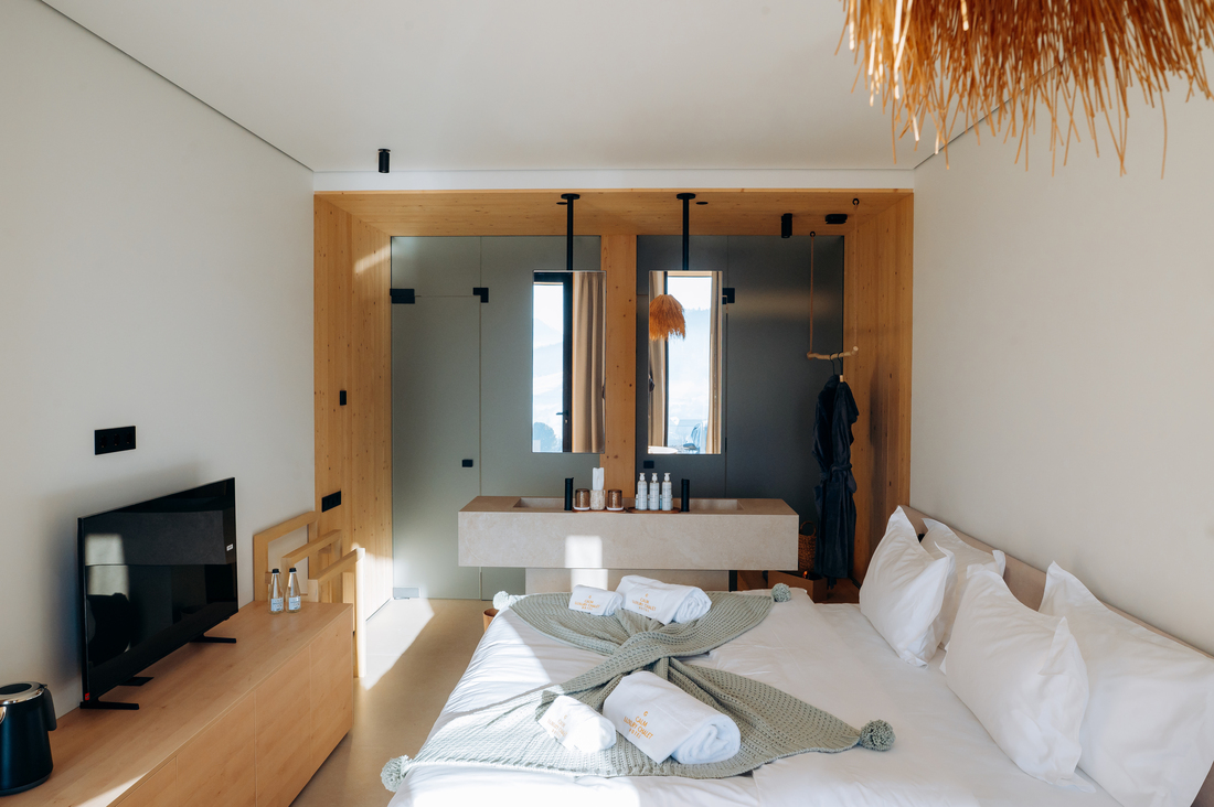 Все зі смаком оформлено та дуже приємно. Сміливо, акуратно та мінімалістично. У нас було все необхідне для кухні та ванної кімнати, аж до найдрібніших деталей. Краєвид з вікна — немов зі зйомок з казки, а комфорт, який створює готель, змушує вас відчувати себе так, ніби ви перебуваєте в найдорожчих гірських місцях. Дуже рекомендую, і ми обов'язково сюди повернемося.